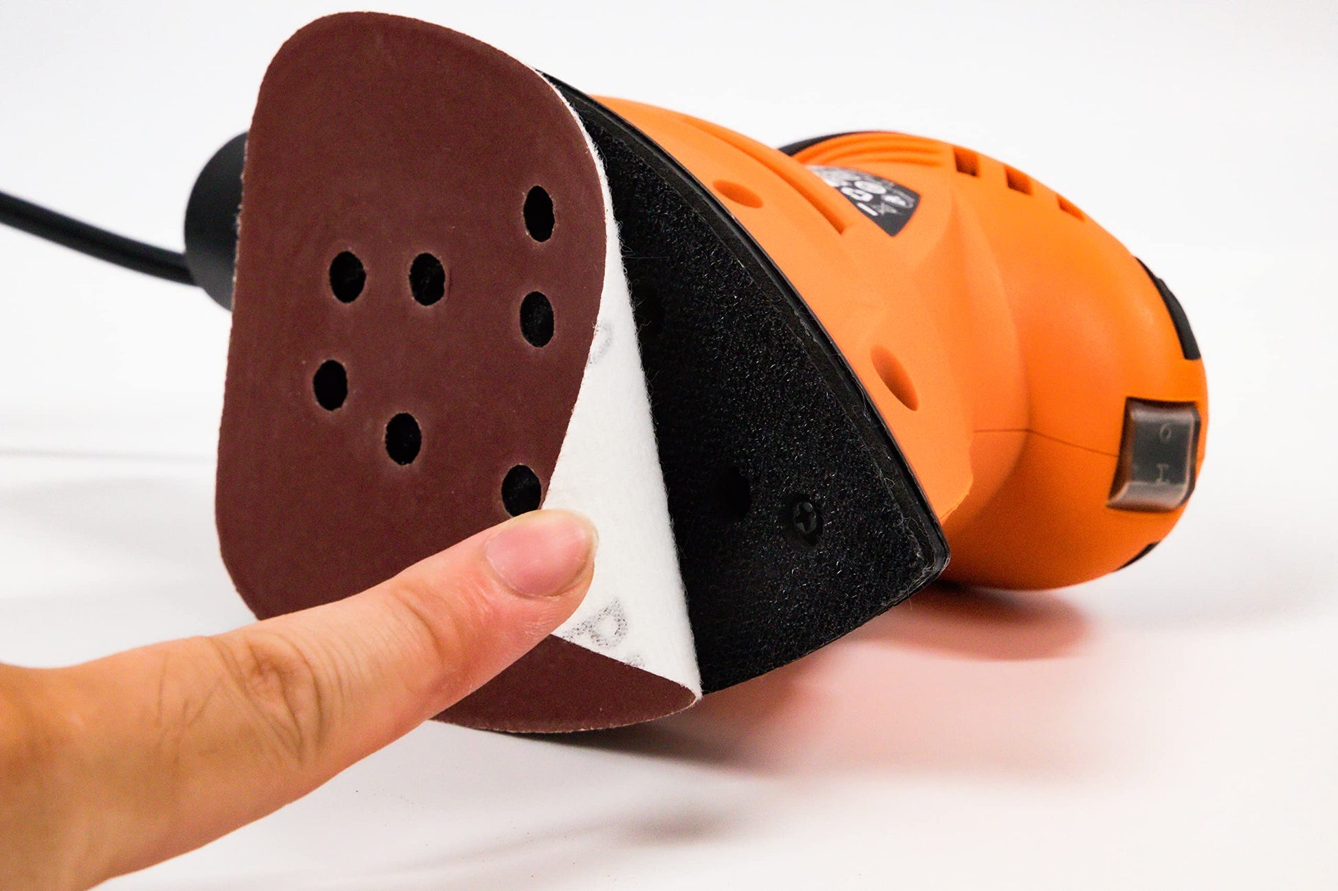 - 20 PCS SANDPAPER - With 20pcs sandpaper (5Pcs*80 & 5Pcs*120 Grits) & 10*finger sandpaper lasts the sander a long using life and meet your different applications of removing paint from wood. It is easy to cause damage if use the finger attachment for a long time. The attachment is used to sander some small places.